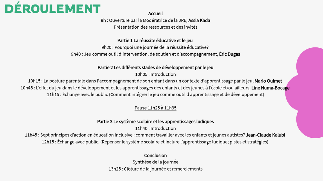Nous savons que la réussite éducative peut être un enjeu majeur dans notre société. En effet, les parents peuvent parfois ressentir que les techniques d’éducation traditionnelles leur font défaut. C’est pourquoi nous voulons introduire l’idée de l’apprentissage et de l’intervention par le jeu. C’est-à-dire, non seulement d’offrir un espace ludique et positif, mais également d’engager les parents et les jeunes dans une co-construction et une expérience de collaboration commune.